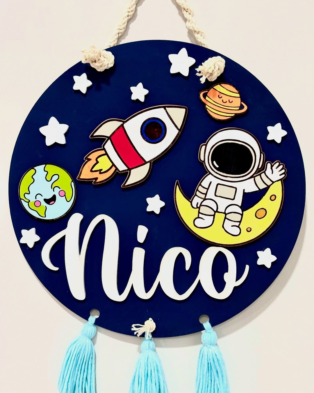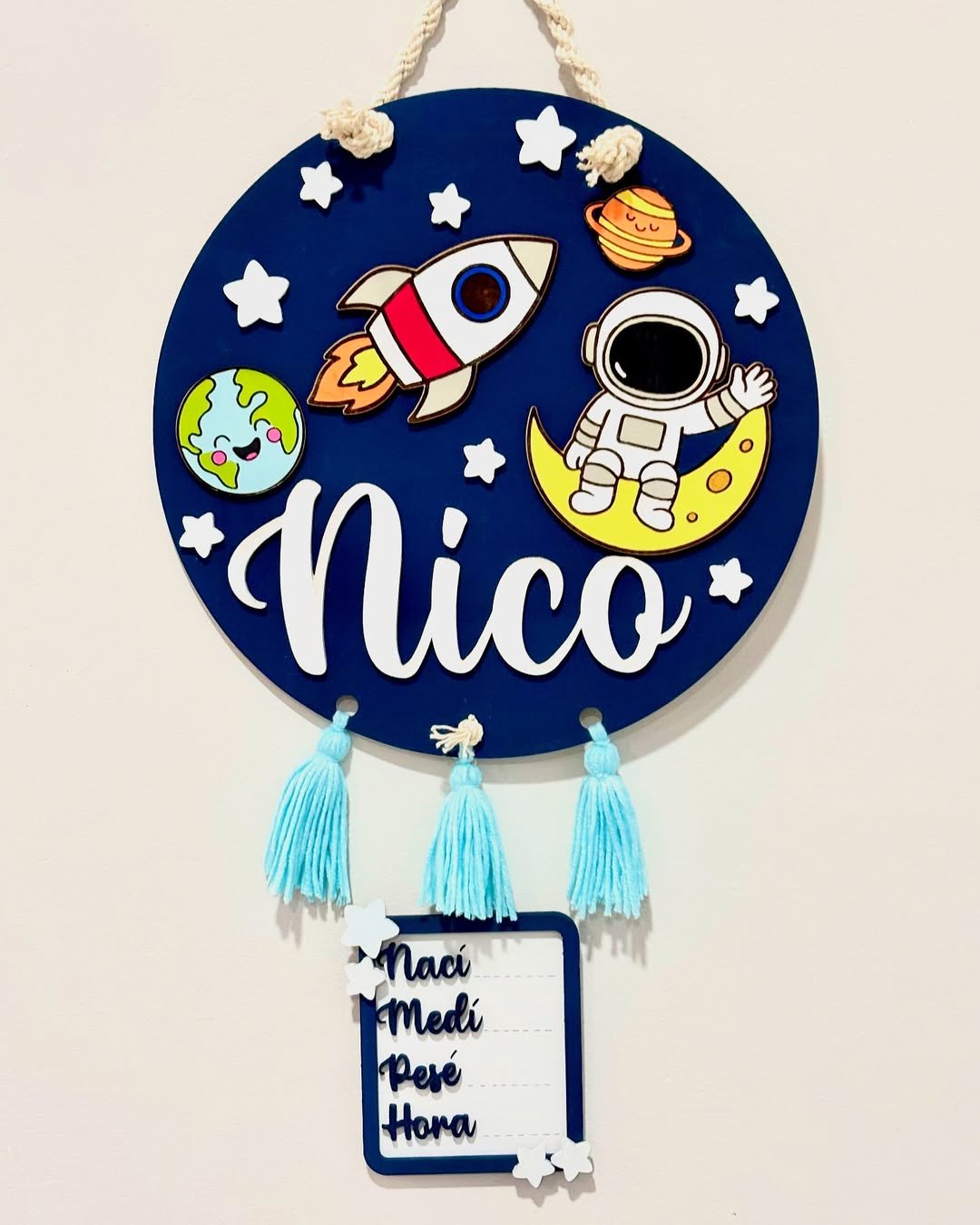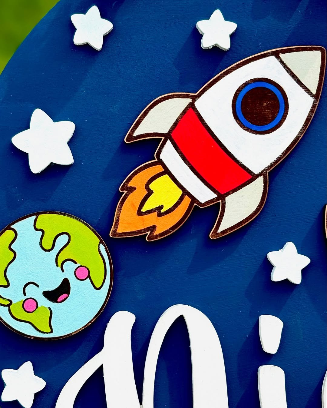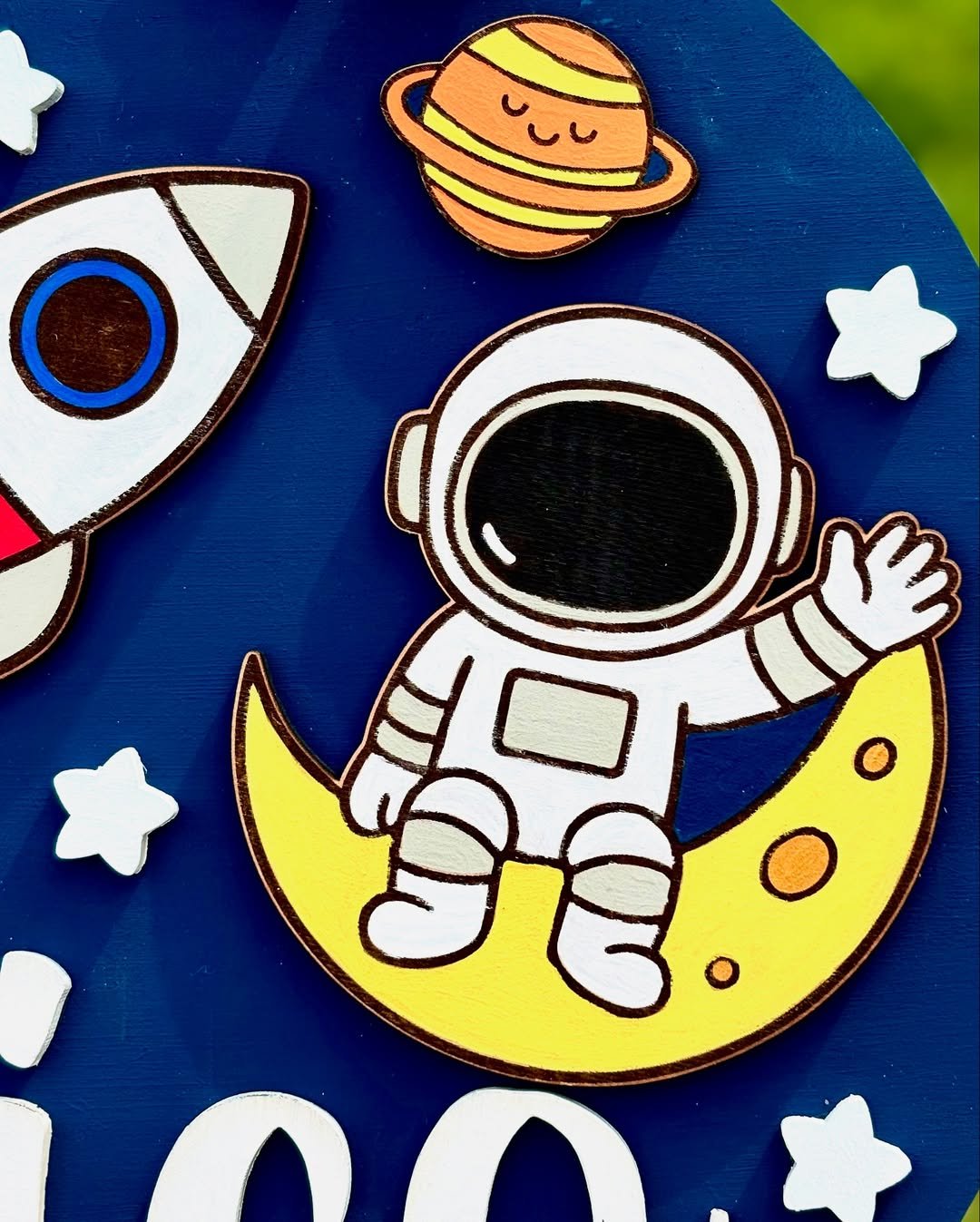 🎀 Decoración: astronauta, cohete, planetas y estrellas en 3D.